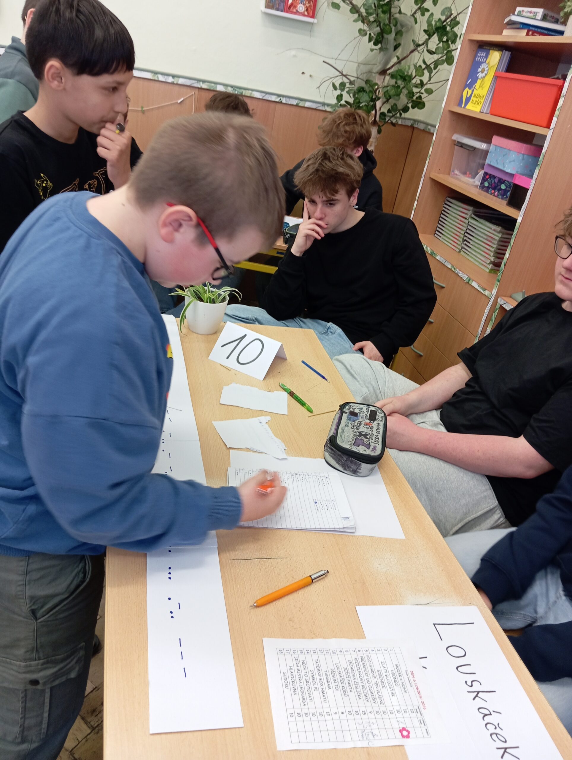 Minulý týden si žáci pátých tříd procvičili nejen mozkové závity. Týmy páťáků řešily na 18ti stanovištích různé úlohy. Vyzkoušeli si svou paměť při vyjmenovávání cifer čísla pí, vzpomínali na zakryté předměty nebo poznávali po hmatu. Osvobozovali ježka z klece, procvičovali