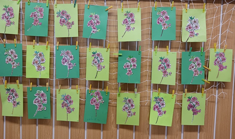V hodině pracovních činností navázali žáci 2.A na učivo z Prvouky, kde jsme si vyprávěli o ovocných stromech na jaře. Proto měli druháčci za úkol pozorovat zbarvení větviček jabloně a ztvárnit je i v hodině. Nejprve vybarvili listy jabloně vodovými